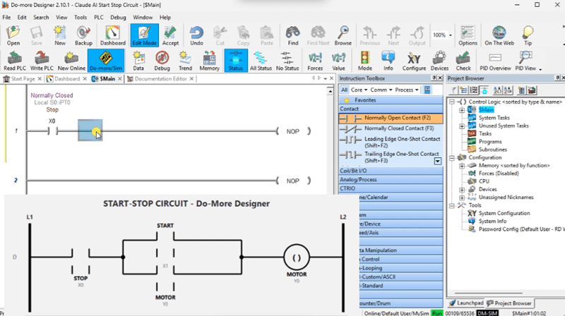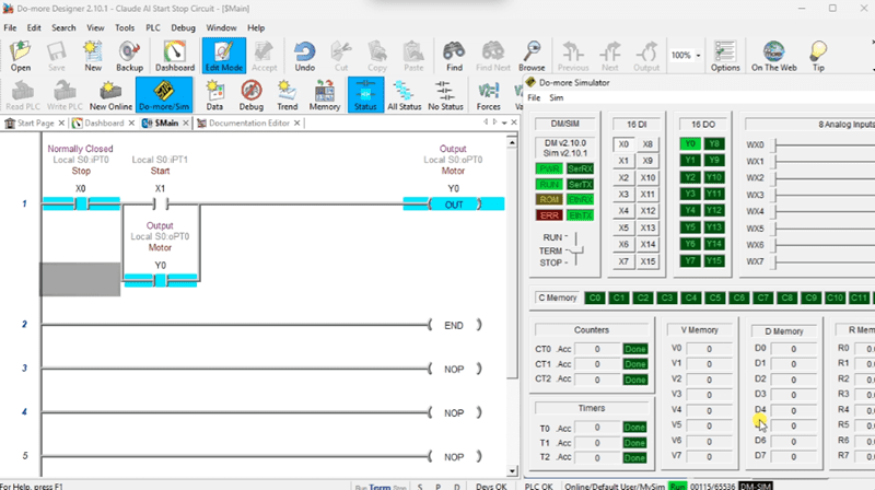 We will be using Claude AI Desktop to determine if we can program a PLC using a ladder logic diagram. Has AI learned enough to be useful when programming? We will take the results and enter the AI PLC program into the Do-More Designer PLC Simulator to verify.