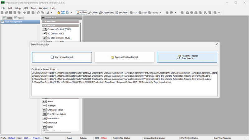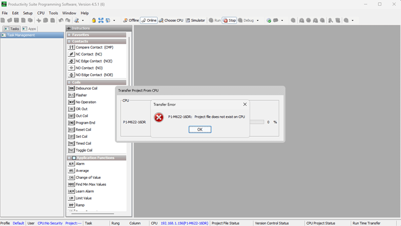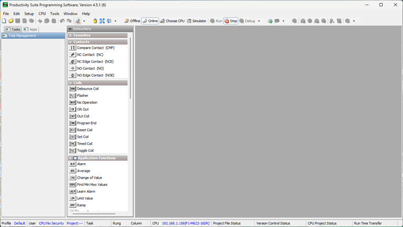 Next time, we will write our first program and transfer it to the Productivity Mini PLC P1-M622-16DR.
