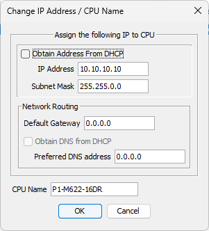 The CPU Name default is the model number (P1-M622-16DR). We will leave this as is, but you could change the name to something easier to address in your automation project.