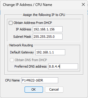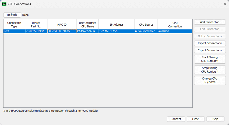 CPU (Ethernet Connection) 192.168.1.156 – Name P1-M622-16DR