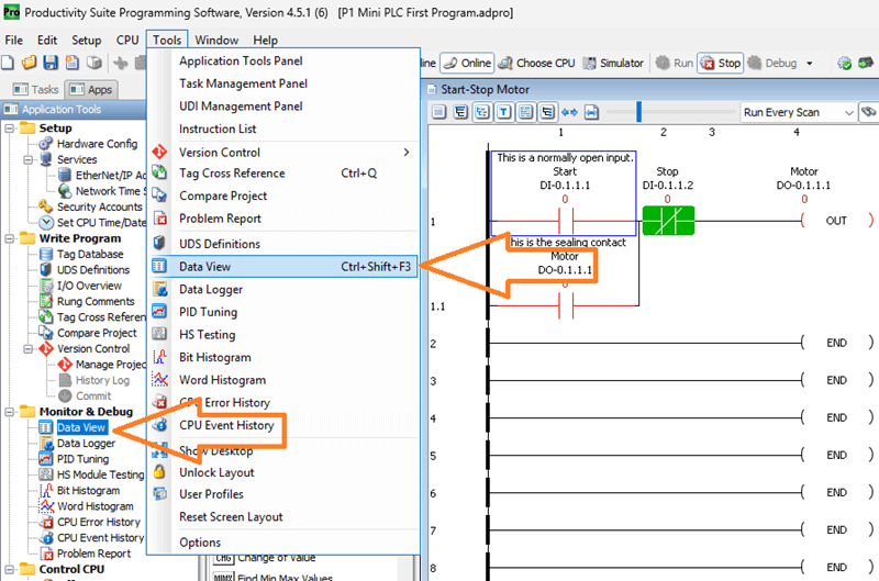 Monitor a Rung in Data View – Mini PLC