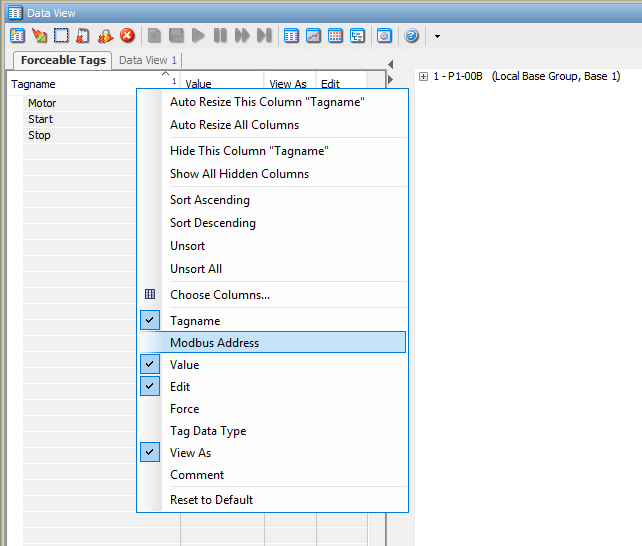 The Productivity Suite software will also allow us to create a data view tab by selecting the rung or rungs and right-clicking to show the menu.