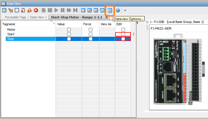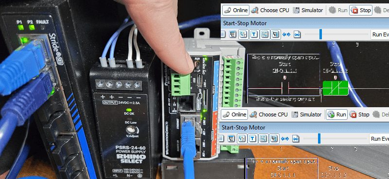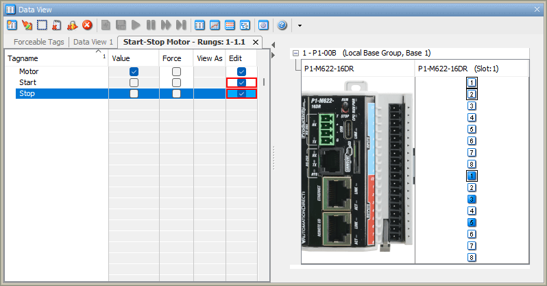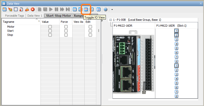 Now that we understand some of the monitoring tools, let’s put them to use, testing our start-stop motor circuit on the P1-M622-16DR: