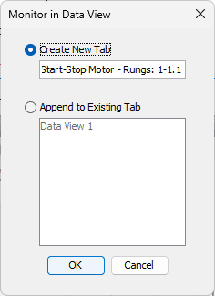 A window will appear, allowing you to either create a new tab or append to an existing one. This will allow us to combine all tag names into a single section of our program for testing and monitoring.